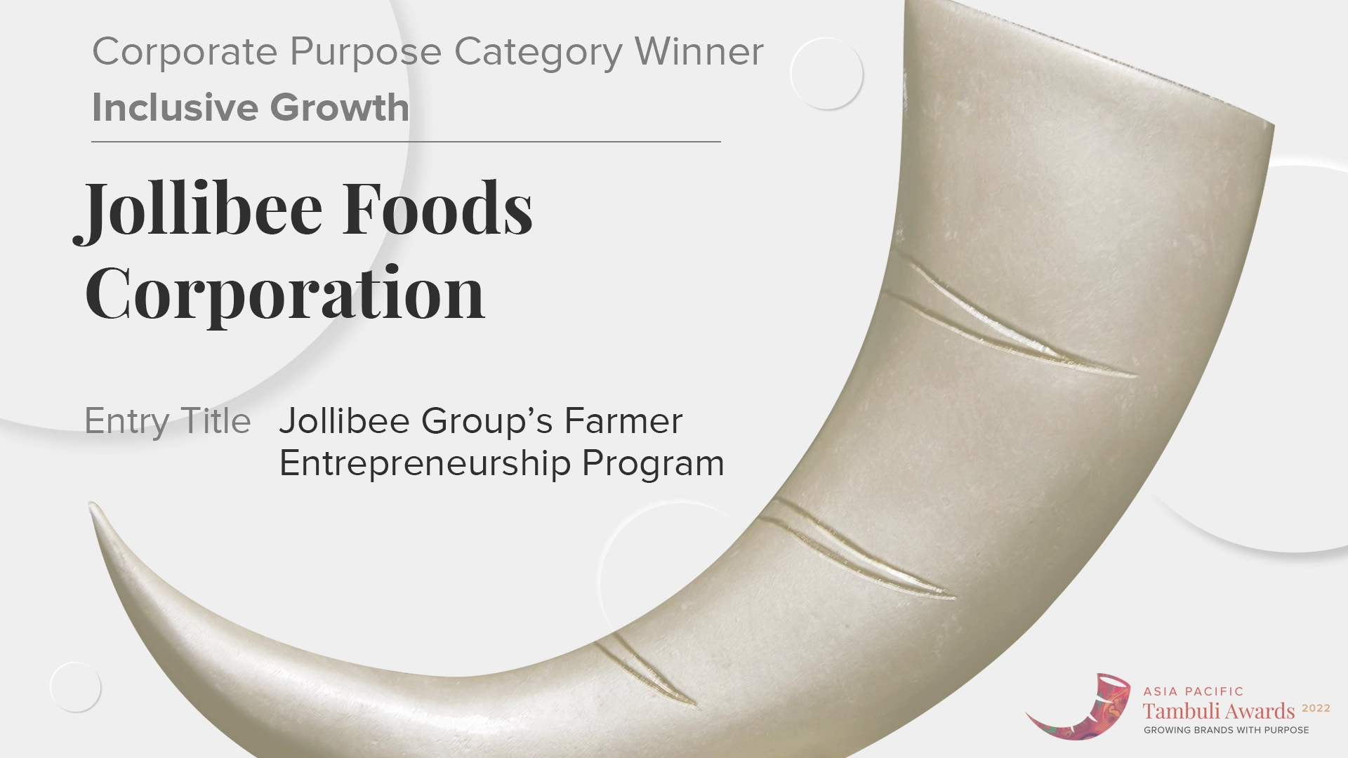 Jollibee Group was recently conferred with an APAC Tambuli Award promoting inclusive growth through its Farmer Entrepreneurship Program.