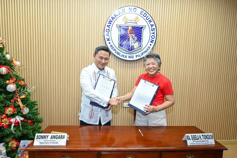 Department of Education Secretary Sonny Angara and Jollibee Group Foundation President Gisela Tiongson led the MOA signing ceremonies for the adoption of the central kitchen model for school-based feeding program held at the Department of Education office on December 11, 2024. This partnership is expected to benefit thousands of students from Luzon, Visayas, and Mindanao in the next one and a half years.